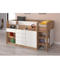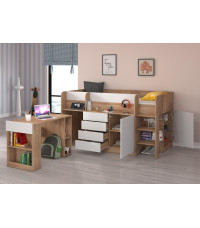 Łóżko piętrowe z biurkiem Smile prawe Sonoma jasna/Biały