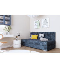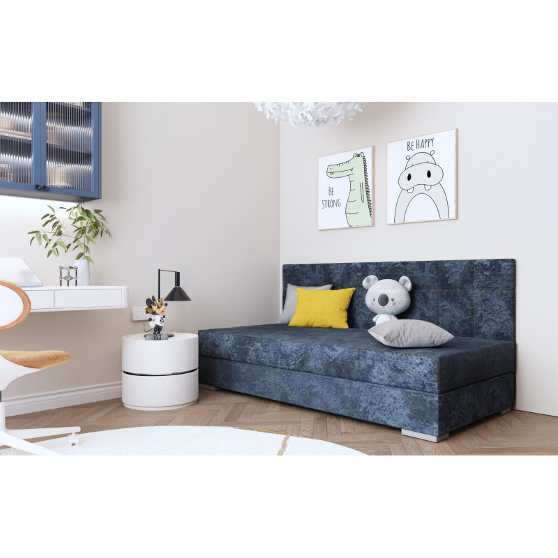 Łóżko tapicerowane z pojemnikiem na pościel SINTRA II o wymiarach powierzchni spania 90/200 cm posiada wykończenie zrobione z tkaniny. Takie rozwiązanie sprawia, że łóżko jest zarówno wygodne do spania, jak i praktyczne w codziennym użytkowaniu. Tapicerka z tkaniny dodaje łóżku eleganckiego wyglądu. Wymiary powierzchni spania 90/200 cm są odpowiednie dla jednej osoby, co czyni to łóżko idealnym do małych sypialni lub dla osób, które potrzebują miejsca do spania, ale nie mają zbyt wiele miejsca w pokoju. Pokrowiec materaca wykonany z tkaniny zapewnia dodatkowy komfort podczas snu. Pojemnik na pościel został wyposażony w sprężyny, dzięki którym chowanie pościeli jest bardzo łatwe.