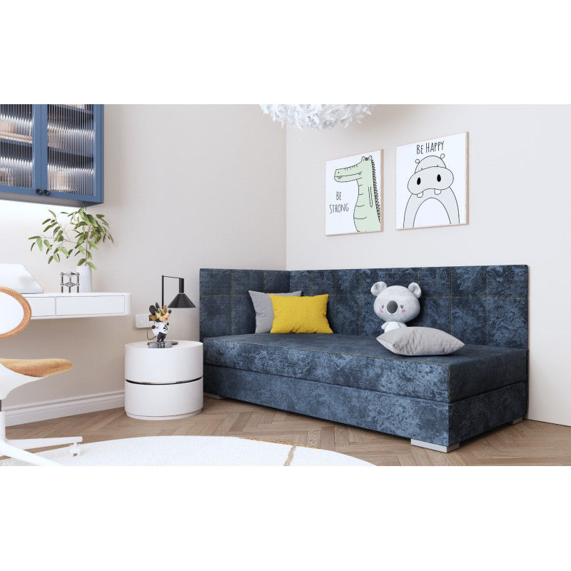 Sintra III lewy łóżko kontynentalne tk. Fior 605 (niebieski) z materacem