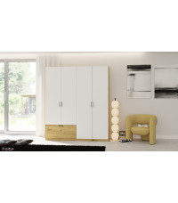 Szafa ALTA 4D1S w kolorze Artisan/Biały to funkcjonalny i stylowy mebel, który idealnie sprawdzi się w nowoczesnych wnętrzach. Z czterema przestronnymi drzwiami i jedną szufladą, zapewnia dużo miejsca na przechowywanie odzieży, butów oraz drobniejszych rzeczy. Połączenie ciepłego odcienia drewna z białym wykończeniem nadaje jej elegancki, ale zarazem przytulny charakter. Solidne wykonanie i nowoczesny design sprawiają, że szafa pasuje do sypialni, przedpokoju czy garderoby, wprowadzając ład i porządek do każdego pomieszczenia.