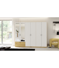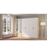 Szafa ALTA 6D1S z lustrem to połączenie nowoczesnej funkcjonalności i subtelnej elegancji, idealne do przestronnych wnętrz. Ma imponujące wymiary: 268,6 cm szerokości, 54 cm głębokości i 210 cm wysokości, co czyni ją wyjątkowo pojemną. Fronty z białej płyty laminowanej kontrastują z ciepłym dekorem dąb artisan na korpusie, a wbudowane lustra optycznie powiększają przestrzeń. Za każdymi drzwiami znajdziesz drążek i półkę, a także praktyczną szufladę o wymiarach 45 × 20 × 12 cm na metalowych prowadnicach kulkowych. Korpus i fronty wykonano z płyt o grubości 16 mm, wykończonych obrzeżem papierowym, z tyłem z HDF montowanym we wręgę. Czarny, tworzywowy uchwyt i ślizgacze zamiast nóżek dodają całości lekkości i prostoty. To stylowy wybór do sypialni, łączący duże możliwości przechowywania z estetyką i solidnym wykonaniem.