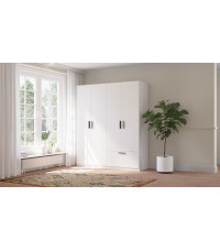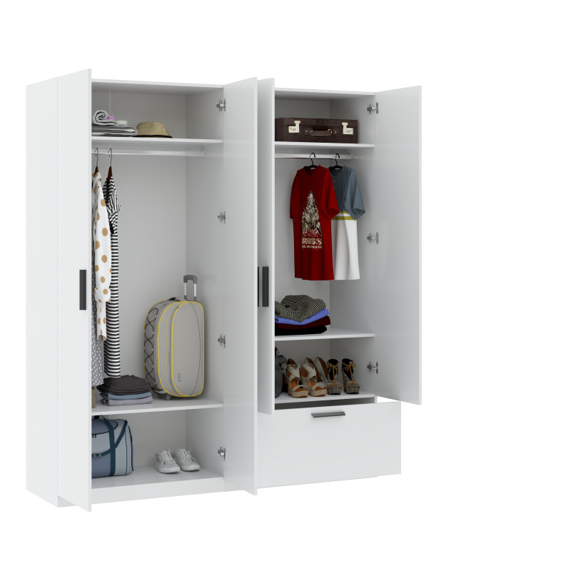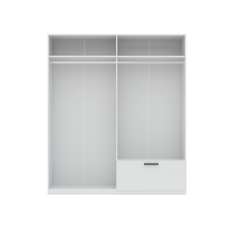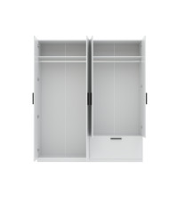 Szafa LITA 4D1S w kolorze białym to elegancka i funkcjonalna propozycja do każdego wnętrza. Wyposażona w cztery przestronne drzwi i jedną szufladę, oferuje dużo miejsca do przechowywania odzieży oraz drobniejszych przedmiotów. Prosty, nowoczesny design i wysoka jakość wykonania sprawiają, że szafa doskonale wpisuje się w minimalistyczne aranżacje. Idealna do sypialni, przedpokoju lub garderoby, wprowadzając porządek i elegancję do Twojego domu.