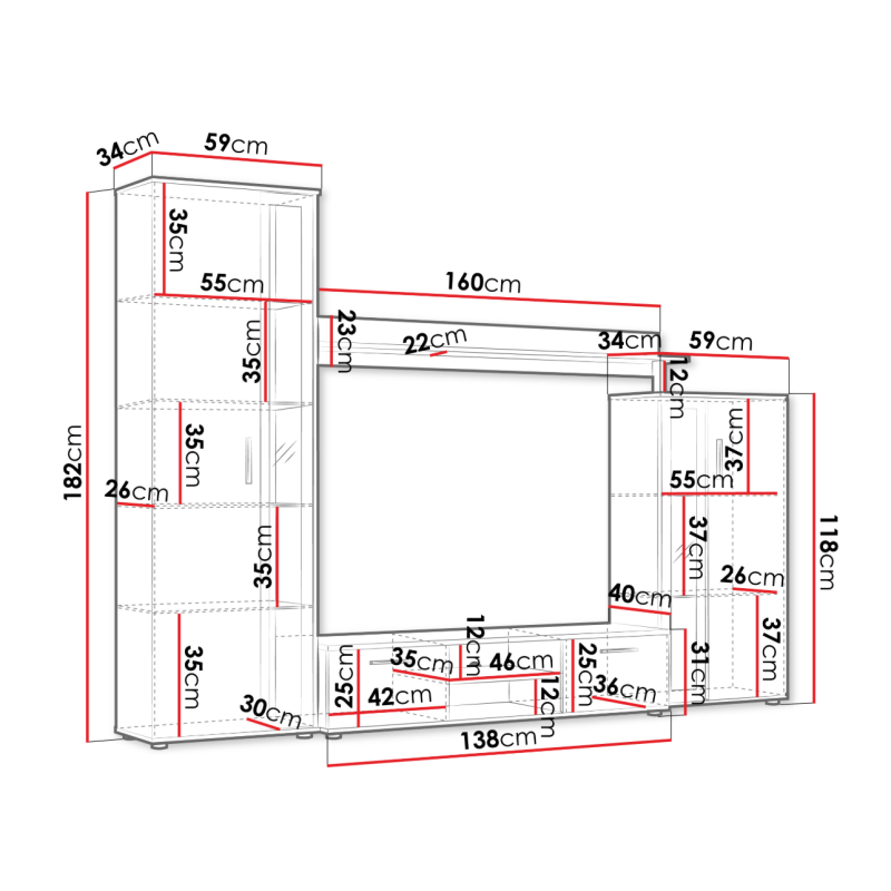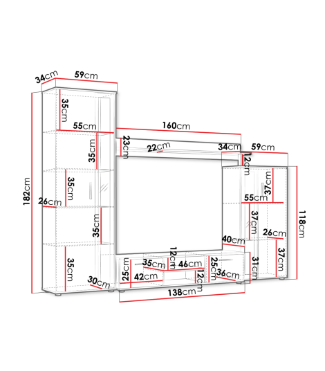 Meblościanka Bentley Country oak grey - funkcjonalność