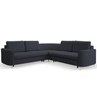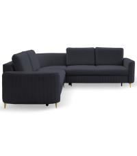 Piękny narożnik LAREN w stylu glamour z modnymi, ozdobnymi przeszyciami. Elegancja i styl podkreślona metalowymi nóżkami w kolorze złotym. Ten model znajdzie zastosowanie w przestronnych aranżacjach, przyciągając spojrzenia.
