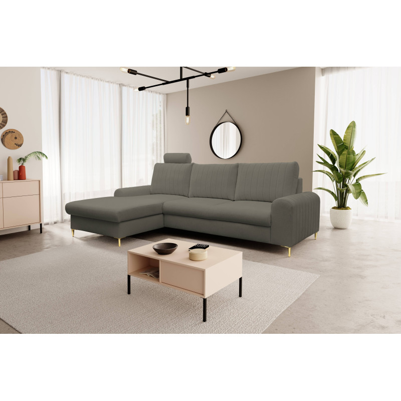Narożnik rozkładany z pojemnikiem na pościel Monaco LOFT 22 lewostronny/nogi złote