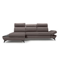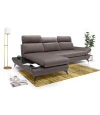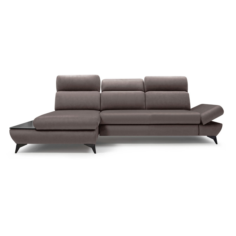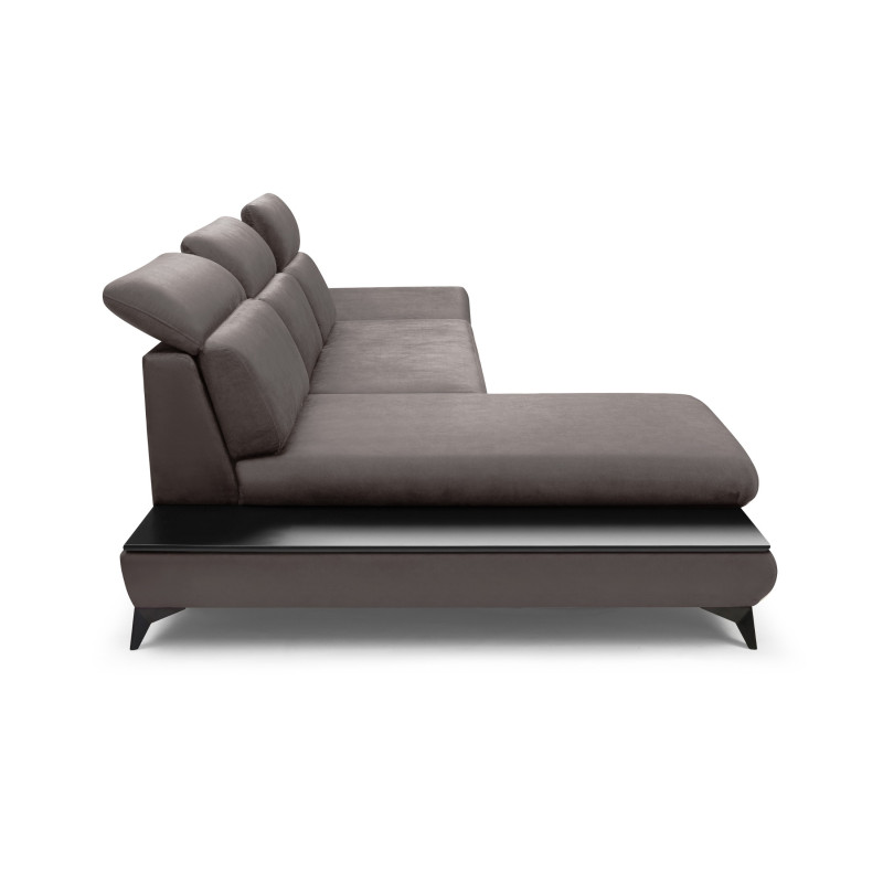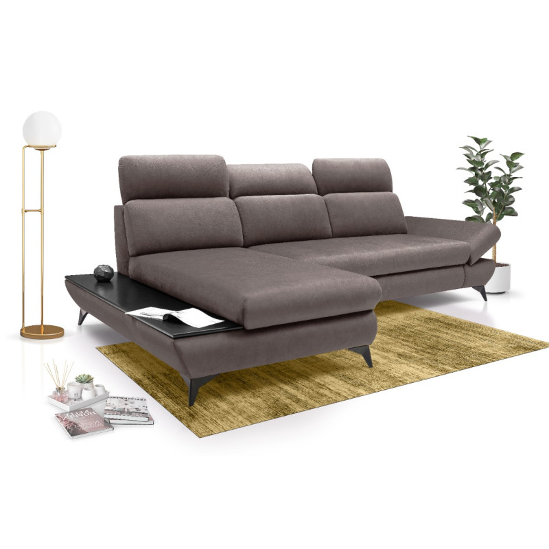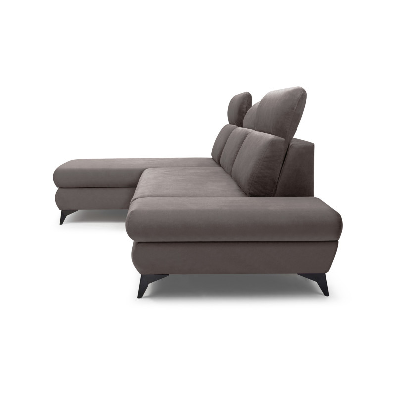 Ten narożnik TITAN w tkaninie Fancy 96 to połączenie nowoczesnego designu z funkcjonalnością na najwyższym poziomie. Jego chłodny, szarobrązowy odcień dodaje elegancji i świetnie wpasowuje się w stonowane, minimalistyczne wnętrza. Model wyposażono w regulowane zagłówki i podłokietniki, które pozwalają dostosować mebel do indywidualnych potrzeb użytkownika, zapewniając maksymalny komfort wypoczynku. Funkcja spania z automatem wspomagającym rozkładanie sprawia, że sofa szybko i bezproblemowo zmienia się w wygodne miejsce do snu o wymiarach 125 x 216 cm. Pod siedziskiem znajduje się pojemnik na pościel, który jest bardzo praktyczny i pomaga utrzymać porządek w salonie. Solidna konstrukcja wykonana z drewna i płyty wiórowej oraz siedzisko z pianki PUR i sprężyny falistej gwarantują trwałość i wygodę na długie lata. Metalowe nóżki z elementami z tworzywa sztucznego stabilizują całość i dodają nowoczesnego charakteru.