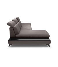 Nowoczesny narożnik TITAN w chłodnym szarobrązowym odcieniu tkaniny Fancy 96. Posiada regulowane zagłówki i podłokietniki, funkcję spania z automatem oraz pojemnik na pościel. Solidna konstrukcja i komfortowe siedzisko zapewniają wygodę na lata.