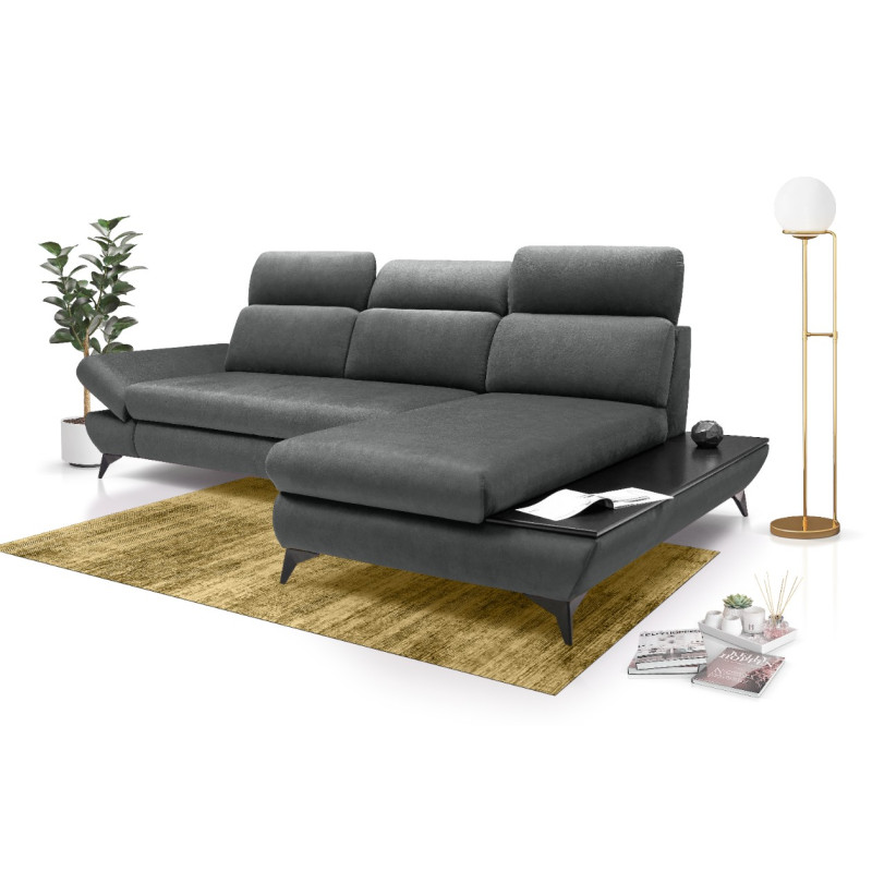 Narożnik TITAN FANCY 37 Prawy to idealne rozwiązanie dla osób szukających nowoczesnego stylu i komfortu w jednym. Grafitowa tkanina nadaje mu uniwersalnego, eleganckiego wyglądu. Świetnie prezentuje się w przestronnych salonach.