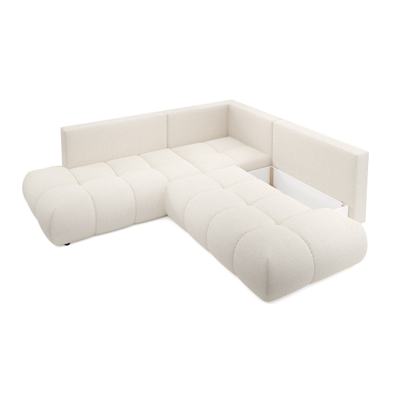 Minimalistyczna forma, miękkie linie i spokojny biały kolor — Soho II w wersji prawej to elegancja bez wysiłku. Funkcja spania i duży pojemnik czynią go praktycznym wyborem do każdego salonu. Idealny balans pomiędzy stylem a funkcjonalnością.