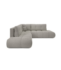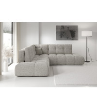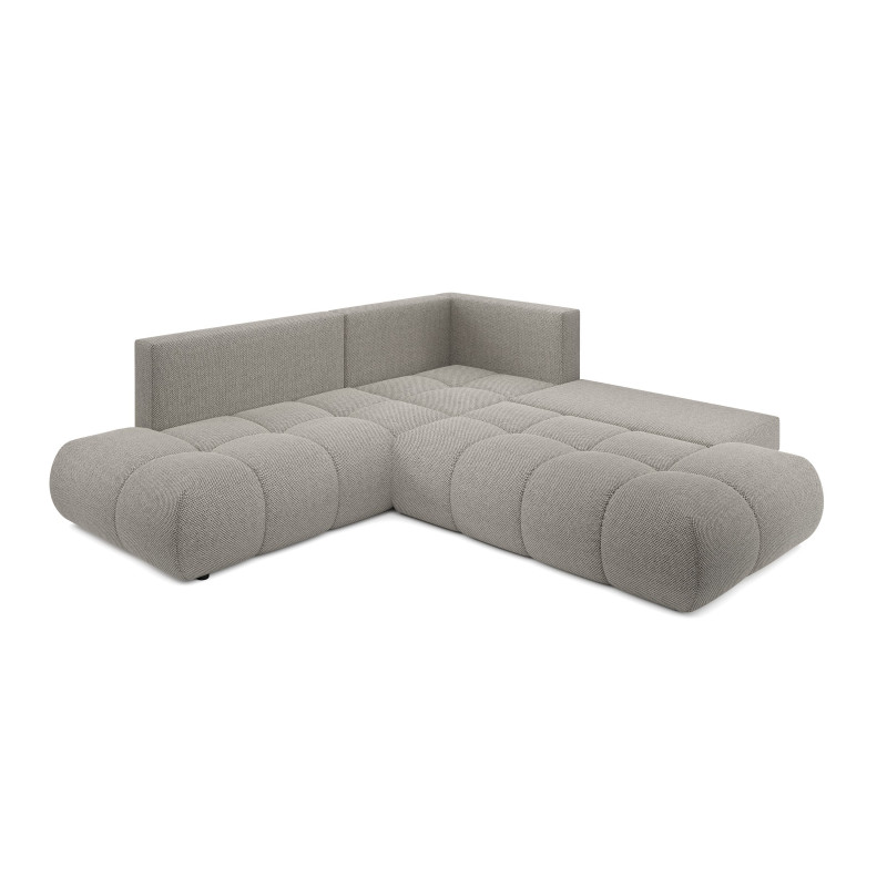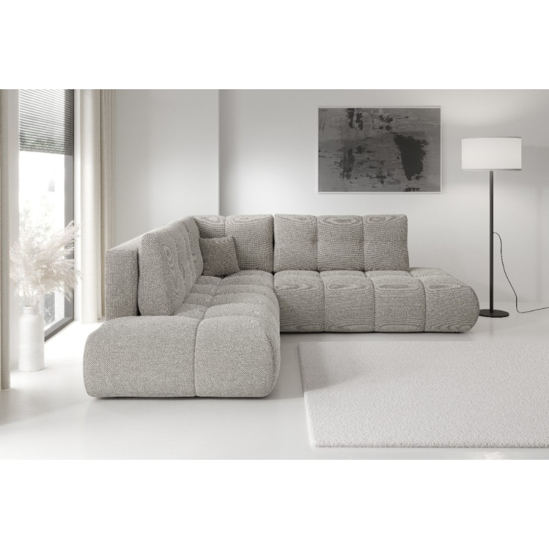 SOHO II CURIO 83 to nowoczesny narożnik w jasnoszarym odcieniu, który przyciąga wzrok miękkim wykończeniem i wygodną formą. Jego wymiary – 266,5 cm szerokości, 88 cm wysokości oraz 266,5 cm głębokości – oferują mnóstwo miejsca do wypoczynku. Wysokość siedziska wynosi 43,5 cm, a funkcja spania o powierzchni 206 x 127 cm sprawdzi się doskonale podczas noclegu gości. Wypełnienie z pianki PUR i silikonowe wnętrze poduch oparciowych gwarantują komfort użytkowania. Zintegrowany pojemnik na pościel (104 x 61 x 19,5 cm) to praktyczny dodatek, który pozwala zaoszczędzić przestrzeń. Tapicerowane plecy umożliwiają dowolne ustawienie narożnika w salonie. Model dostępny w wersji lewej i prawej, dopasuje się do układu Twojego wnętrza.