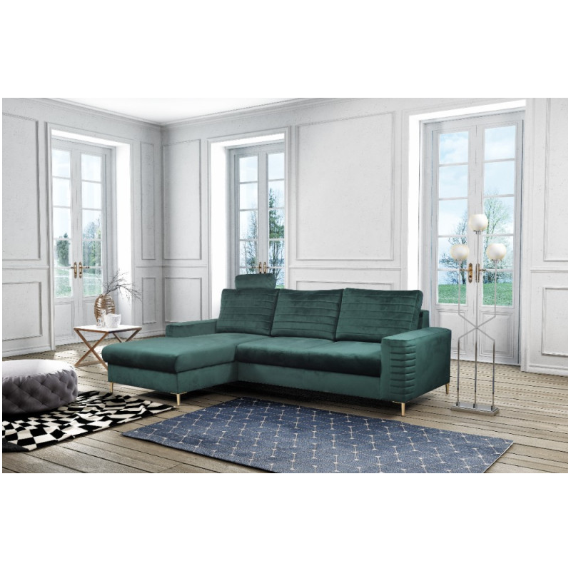 Narożnik lewostronny rozkładany z pojemnikiem na pościel COLLIN JUNGLE GREEN 27