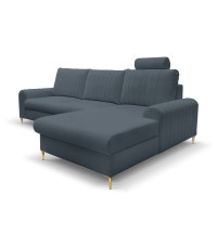 Narożnik MONACO to mebel idealnie pasujący do wnętrz w stylu glamour. Złote nóżki oraz przeszycia na bokach i poduszkach oparciowych nadają elegancji i przyciągają wzrok.