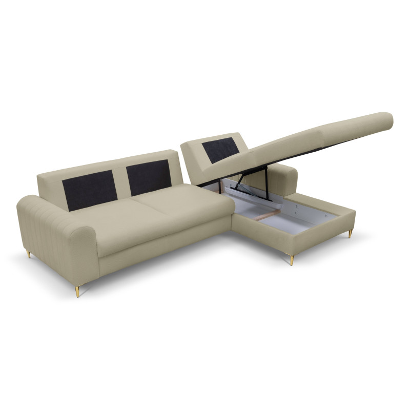 Narożnik prawostronny rozkładany z pojemnikiem na pościel Monaco LOFT 2 - czarne nóżki