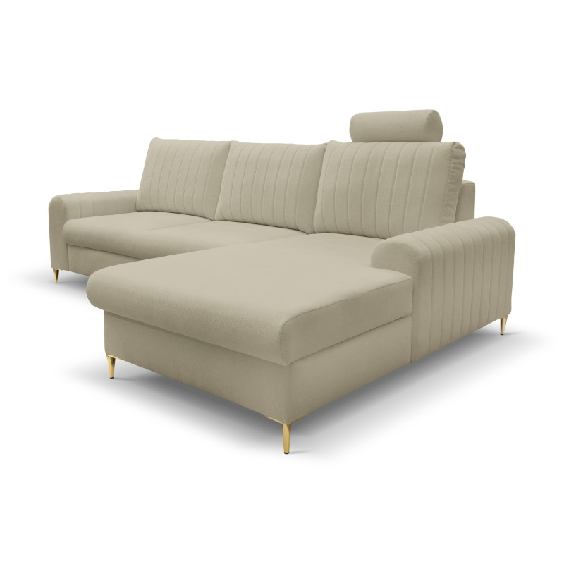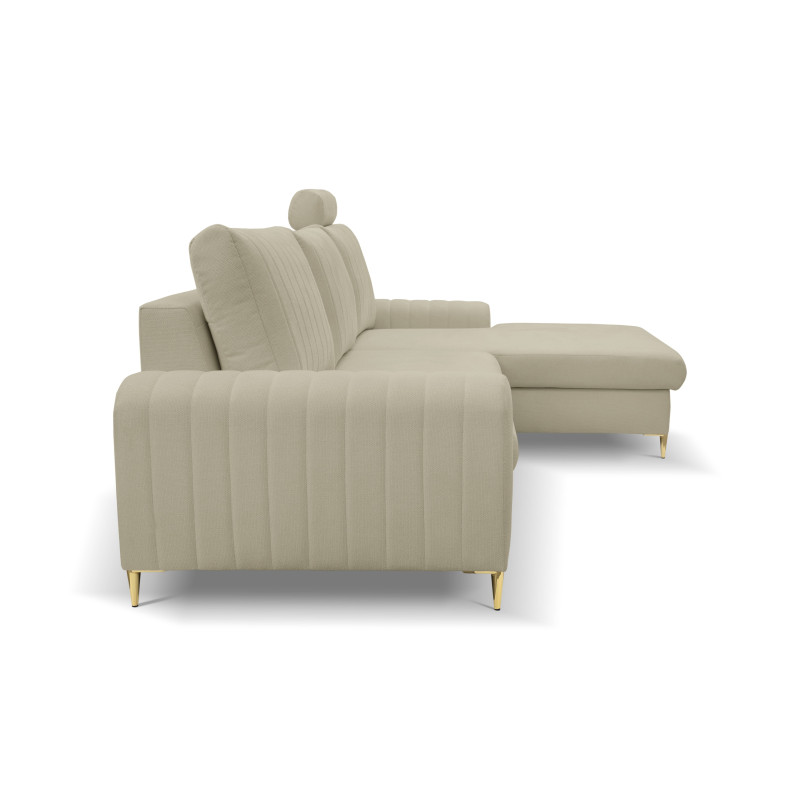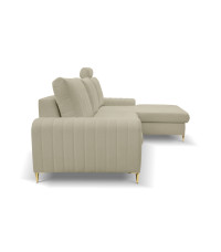 Narożnik MONACO to mebel idealnie pasujący do wnętrz w stylu glamour. Złote nóżki oraz przeszycia na bokach i poduszkach oparciowych nadają elegancji i przyciągają wzrok.
