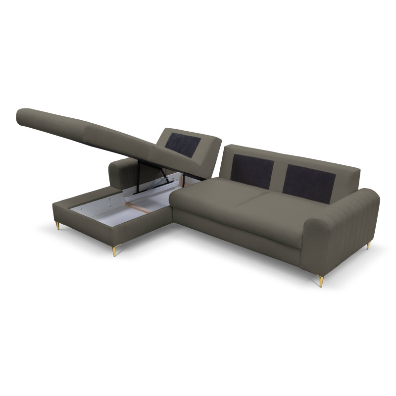 Narożnik rozkładany z pojemnikiem na pościel Monaco prawy LOFT 22 - czarne nóżki