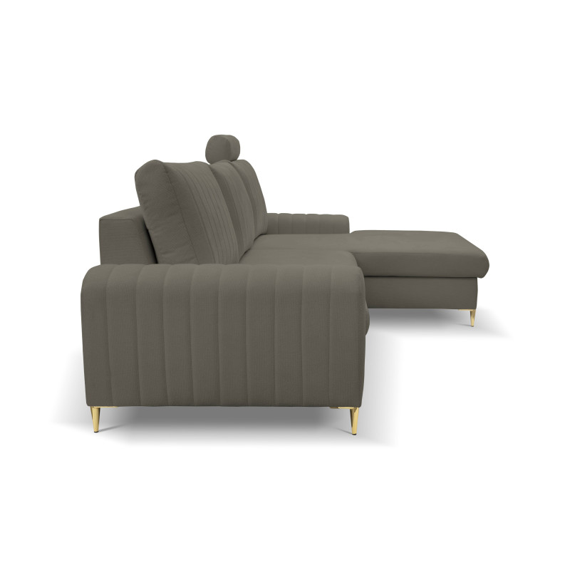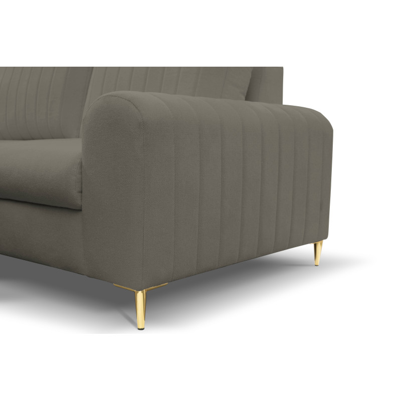 Narożnik MONACO to mebel idealnie pasujący do wnętrz w stylu glamour. Złote nóżki oraz przeszycia na bokach i poduszkach oparciowych nadają elegancji i przyciągają wzrok.