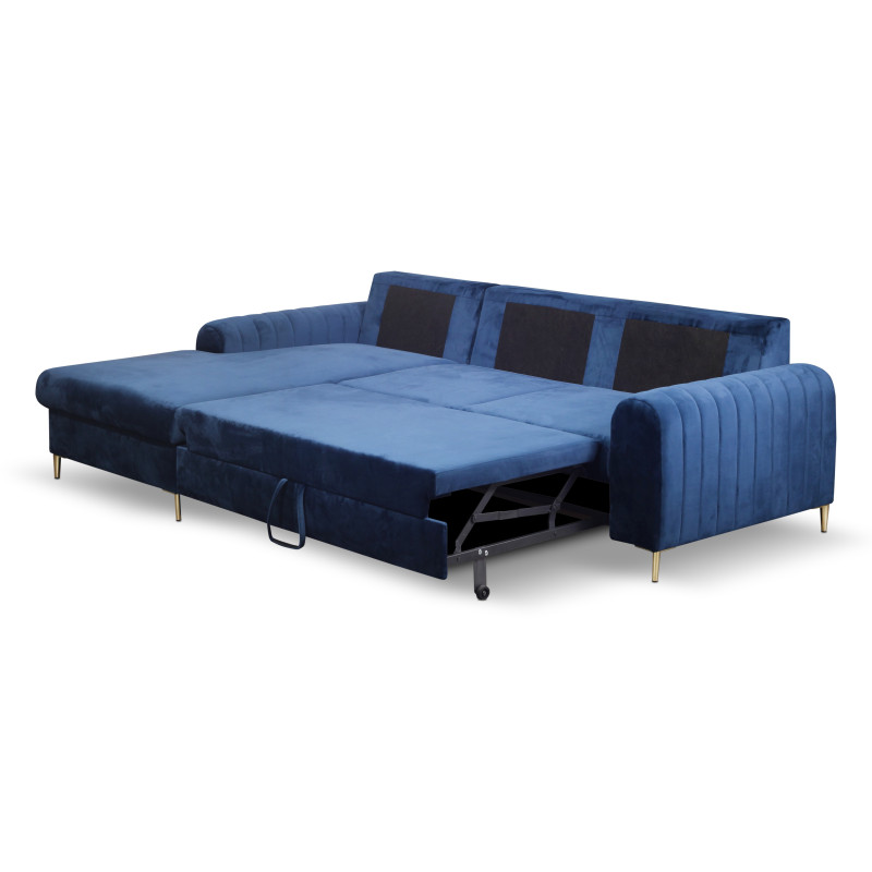 Narożnik rozkładany z pojemnikiem na pościel Monaco lewy NAVY 25 - złote nóżki