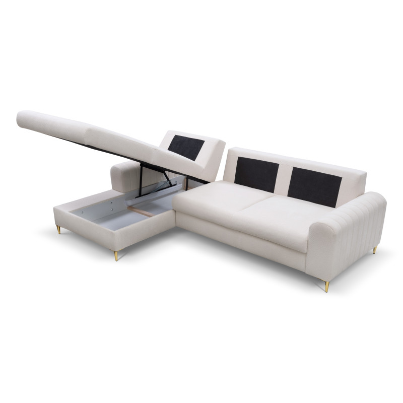 Narożnik rozkładany z pojemnikiem na pościel Monaco lewy LOFT 1 - czarne nóżki