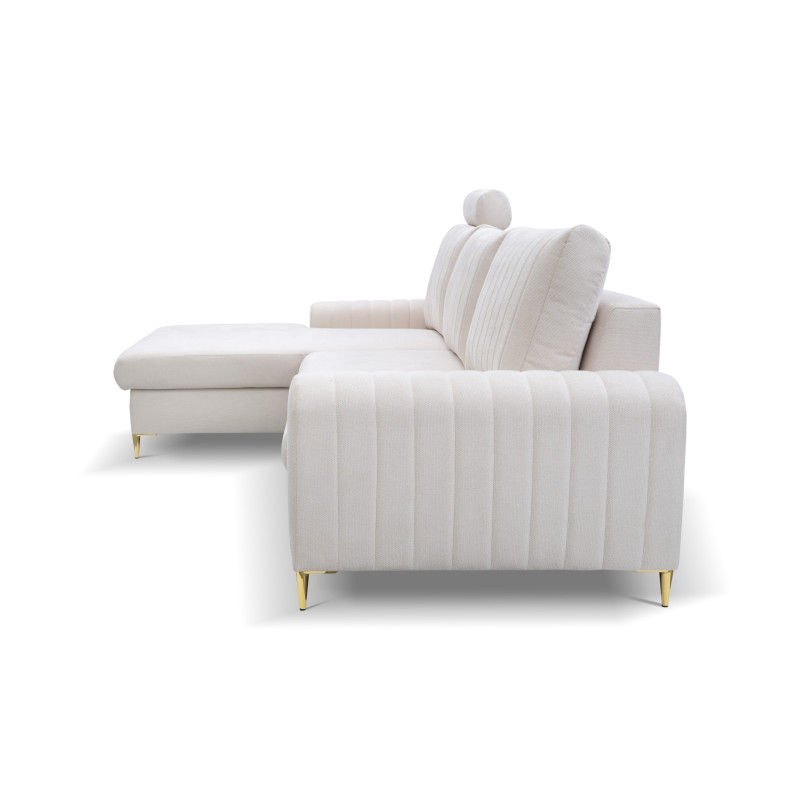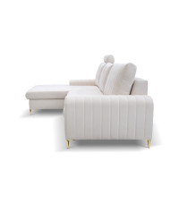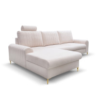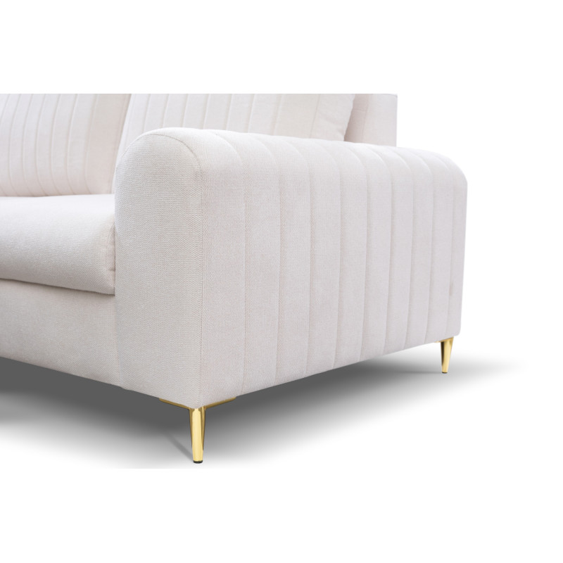 Narożnik MONACO to mebel idealnie pasujący do wnętrz w stylu glamour. Złote nóżki oraz przeszycia na bokach i poduszkach oparciowych nadają elegancji i przyciągają wzrok.