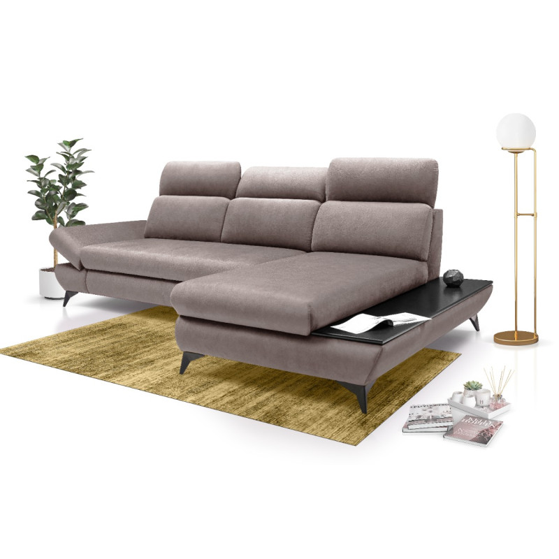 Narożnik Titan Fancy 90 w wersji prawej w chłodnym odcieniu brązu to stylowy i funkcjonalny mebel, który podkreśli nowoczesny charakter Twojego salonu. Regulowane zagłówki i podłokietniki zapewnią Ci maksymalny komfort podczas wypoczynku, a praktyczna funkcja spania sprawi, że mebel z łatwością zmieni się w wygodne łóżko.