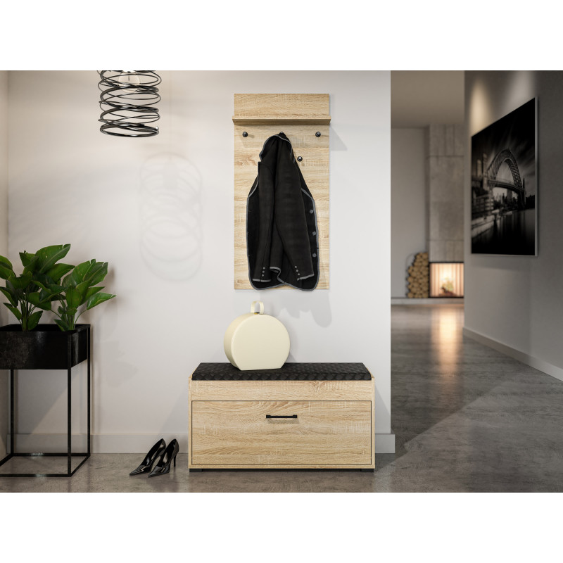 Meble z kolekcji Caro to połączenie klasycznego designu i funkcjonalności. Bogata oferta mebli Caro to świetna propozycja do przedpokoju, holu czy pokoju dziennego. Do stworzenia brył wykorzystaliśmy jeden z najpopularniejszych i bardziej uznanych dekorów – dąb Sonoma jasna. Uniwersalna kolorystyka sprawdzi się w każdym wnętrzu. Meble wykończone są minimalistycznymi, czarnymi uchwytami oraz pasującymi do nich stopkami. Proste i praktyczne meble Caro stworzą ciepłe i uporządkowane wnętrze już od samego wejścia do Twojego domu. Duży wybór poszczególnych elementów kolekcji daje swobodę aranżacji oraz maksymalne wykorzystanie przestrzeni, którą dysponujemy.