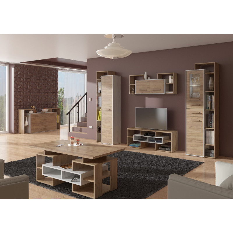 Półka RIO-16 to stylowy i funkcjonalny element wyposażenia, który świetnie sprawdzi się w salonie, sypialni czy pokoju młodzieżowym. Połączenie matowego craft białego z craft złotym frontem dodaje wnętrzu elegancji i ciepła, a zamykane szafki pozwalają na dyskretne przechowywanie drobiazgów.