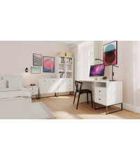 Kolekcja mebli Linea zrealizowana w bardzo nowoczesnym stylu. Białe lub kaszmirowe korpusy oraz fronty, ozdobione metalowymi uchwytami w półmatowym czarnym kolorze. Mebel na metalowych, kwadratowych i prostych nogach, również w półmatowym, czarnym kolorze.