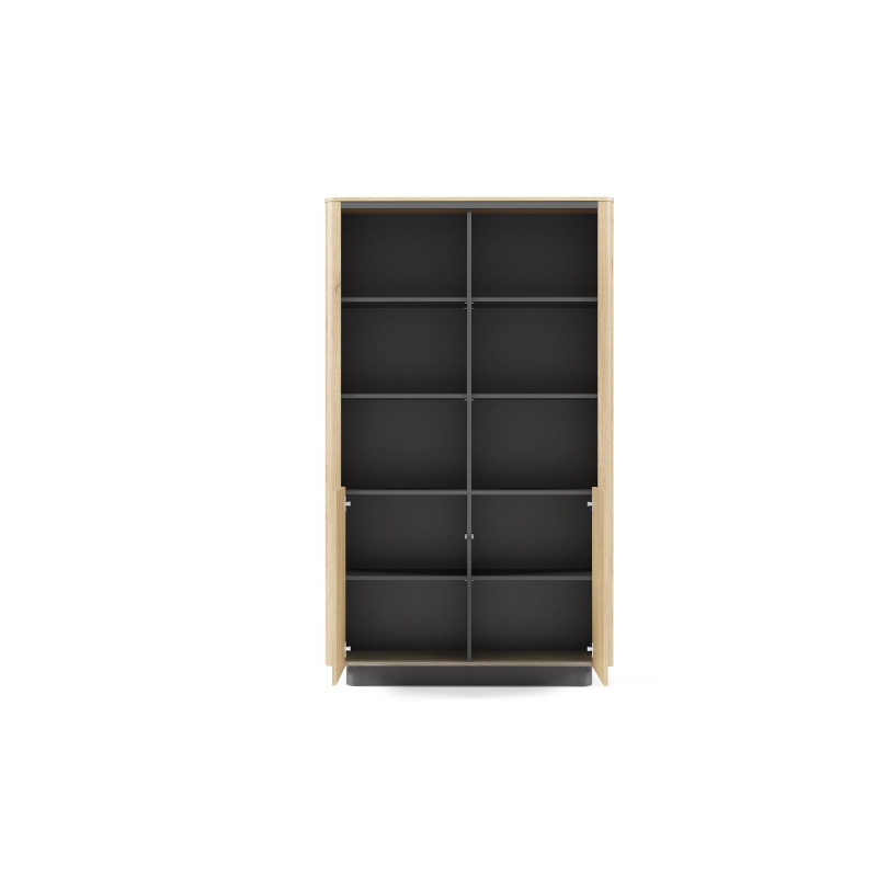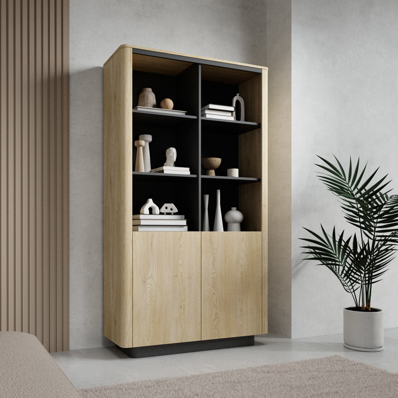 Regał Torro 2D to doskonały wybór dla osób ceniących nowoczesny design i funkcjonalność w jednym. Z połączeniem naturalnego odcienia dębu cremona i eleganckiego czarnego wykończenia, mebel doda stylowego akcentu każdemu wnętrzu. Dzięki systemowi push-to-open oraz przestronnym półkom, regał idealnie sprawdzi się zarówno w salonie, jak i biurze, zapewniając wygodę użytkowania przez lata.