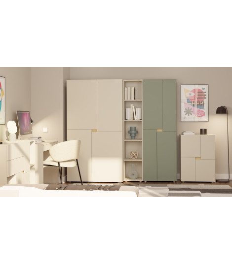 Nowoczesny regał LENS w eleganckim kolorze kaszmir to funkcjonalny i stylowy mebel do każdego wnętrza. Pięć praktycznych półek zapewnia dużo miejsca na książki, dekoracje i inne drobiazgi, a minimalistyczny design idealnie wpisuje się w nowoczesne aranżacje.