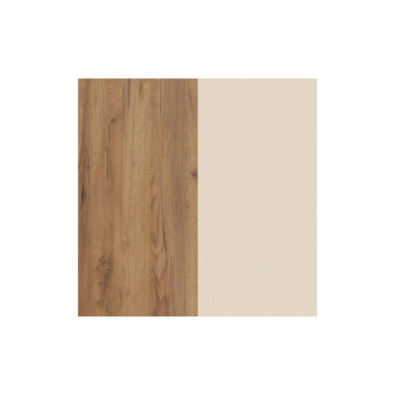Regał wysoki Hugo HUG-07 w kolorze Craft złoty/Krem to elegancki i funkcjonalny element nowoczesnego wnętrza. Posiada dwie części jednodrzwiowe, dwie szuflady oraz dwie szklane półki, idealne do ekspozycji dekoracji lub książek. Wykonany z wysokiej jakości płyty meblowej, zapewnia trwałość i solidność. Świetnie komponuje się z pozostałymi elementami kolekcji Hugo.
