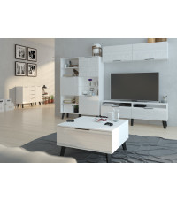 Regał Sven to połączenie nowoczesnej elegancji i praktyczności. Trzydrzwiowa konstrukcja z dodatkowymi otwartymi półkami pozwala na funkcjonalne przechowywanie, a biały połysk nadaje wnętrzu lekkości i świeżości.