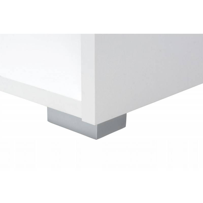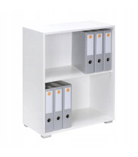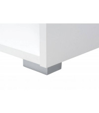 Regał Vela wykonany jest z wysokiej jakości płyty laminowanej, odpornej na zarysowania i codzienne użytkowanie. Kolor biały nadaje mu nowoczesny, elegancki wygląd, który doskonale komponuje się z różnorodnymi stylami wnętrz. Mebel cechuje się trwałością i wytrzymałością, dzięki czemu będzie służył przez długie lata, zachowując estetyczny wygląd.
