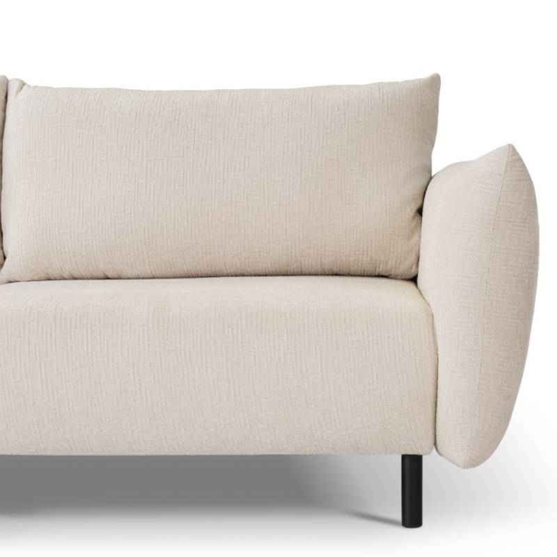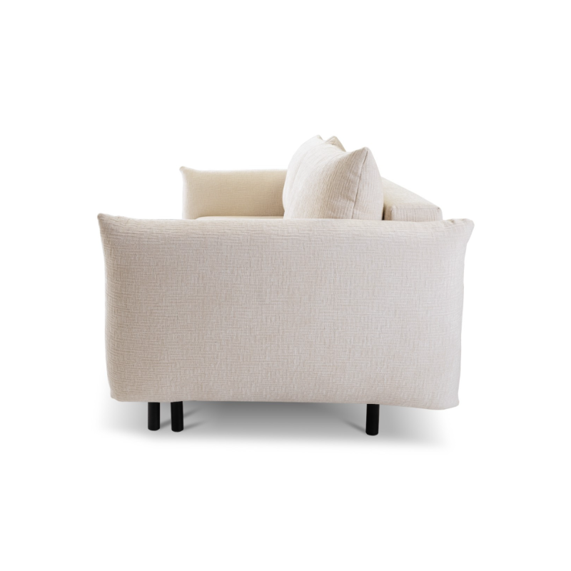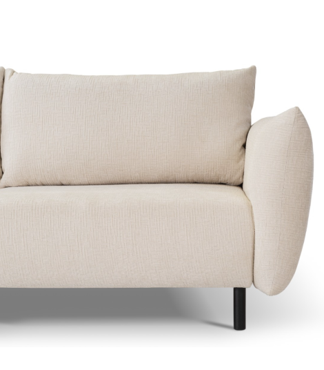 ADEL to komfortowa sofa o miękkich kształtach w stylu japandi. Charakterystyczne boki, wygodne poduszki oparciowe oraz cienkie, czarne nogi sprawiają, że mebel prezentuje się niezwykle okazale. Idealne miejsce na wypoczynek.