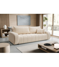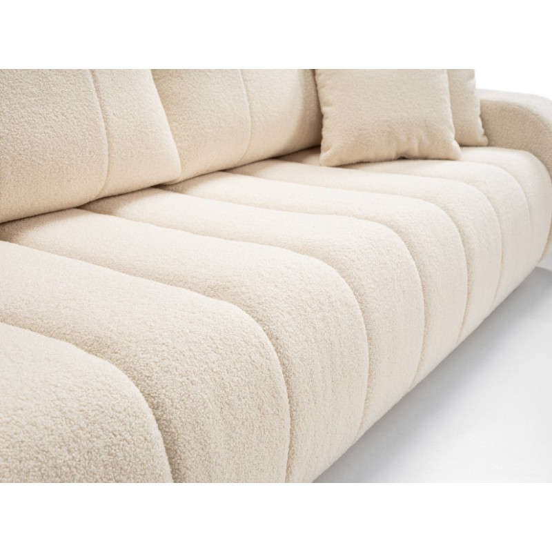Sofa Baloo zachwyca wyjątkową bryłą i niezwykłym desingnem. Mebel będzie prezentować się znakomicie zarówno we wnętrzach eleganckich, tych w stylu skandynawskim, jak też o nowoczesnym charakterze. Duże, miękkie poduszki oparciowe, dekoracyjne, pionowe przeszycia, zaoblone boczki i siedzisko oraz minimalistyczne nóżki tworzą zestaw doskonały. Dopełnieniem całości są ozdobne poduszki.