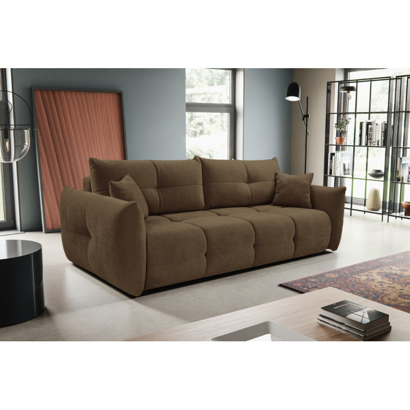 Sofa BASE WIND 22 w ciepłym brązowym odcieniu to połączenie wygody i funkcjonalności. Dzięki funkcji spania DL i pojemnikowi na pościel jest praktycznym meblem do każdego salonu, który zapewni relaks i komfort użytkowania.