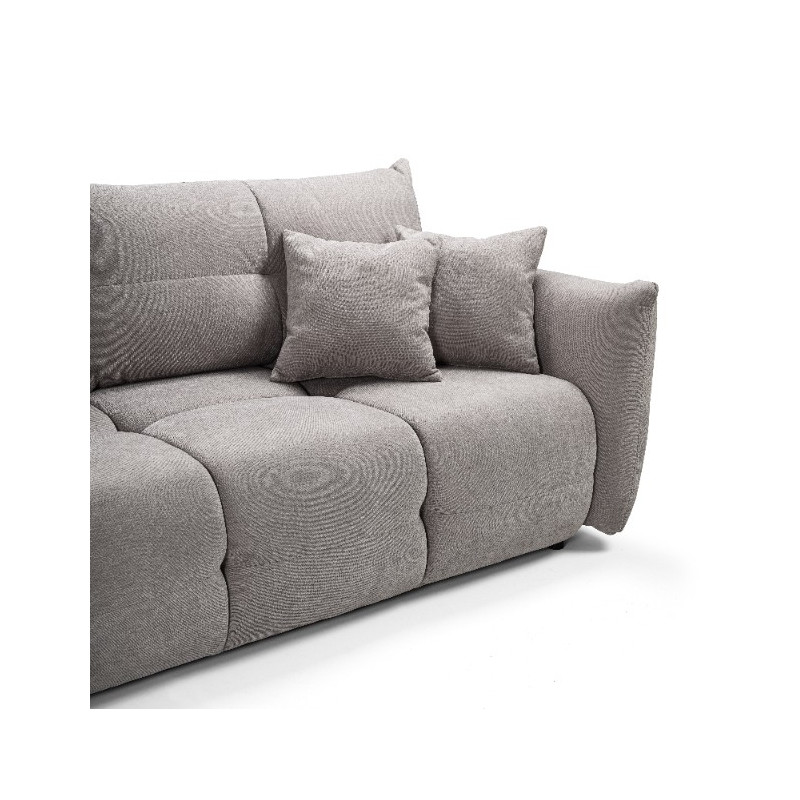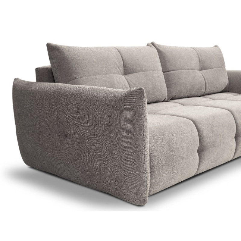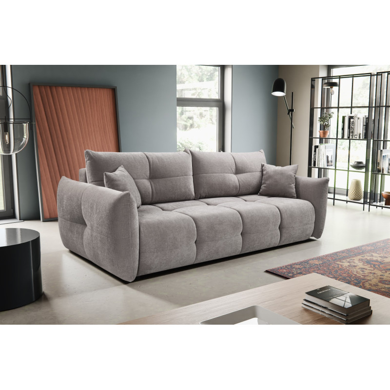 Sofa BASE WIND 82 w eleganckim jasnoszarym odcieniu łączy nowoczesny design z funkcjonalnością. Wyposażona w funkcję spania DL oraz pojemnik na pościel, idealna do codziennego relaksu i wygodnego snu.