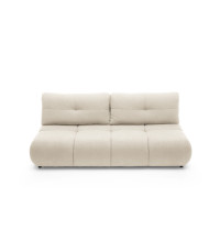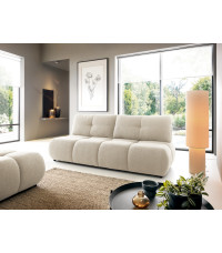 MILO sofa NOW OR NEVER 03 w jasnej, subtelnej tkaninie to propozycja dla miłośników minimalistycznego designu z nutą elegancji. Mebel o szerokości 214 cm i głębokości 104 cm wyposażono w funkcję spania typu DL o powierzchni 142 x 200 cm, która łatwo zamieni salon w komfortową sypialnię. Luźne poduchy oparciowe zapewniają wygodne oparcie, a pojemnik na pościel umożliwia przechowywanie dodatkowych koców czy poduszek. Tapicerowane plecy pozwalają ustawić sofę na środku pokoju, a czarne nóżki z tworzywa sztucznego nadają jej nowoczesnego charakteru.