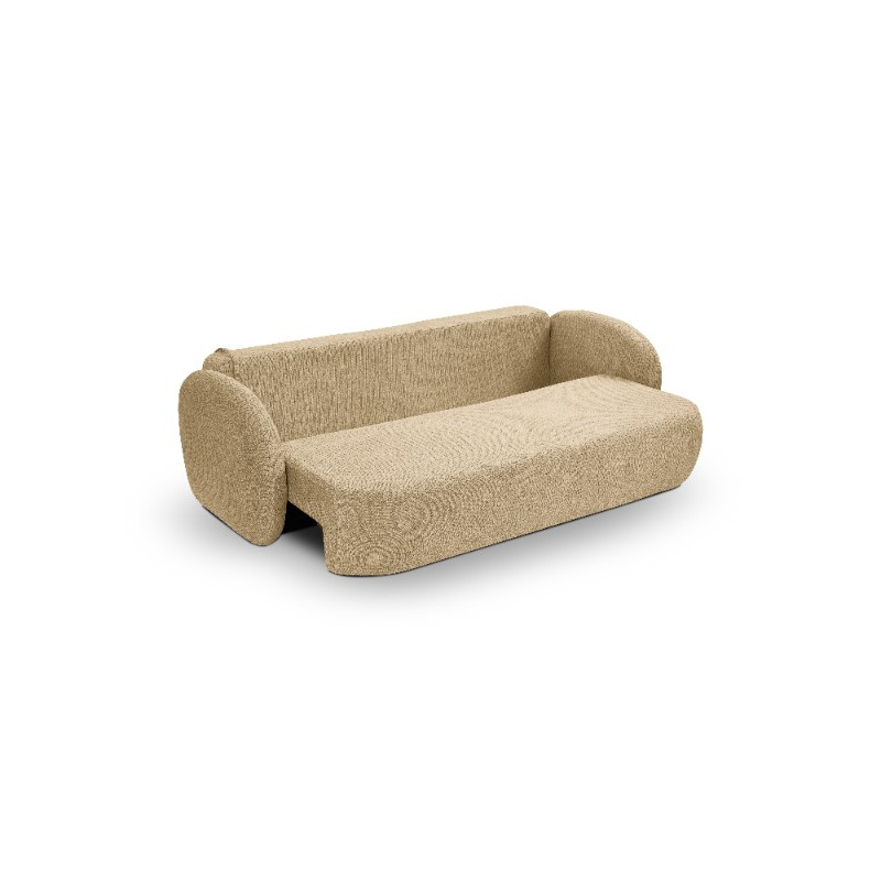 Sofa OLIO w tkaninie ARAGON 14 o wymiarach 238 x 86,5 x 101 cm zapewnia wygodne siedzisko na wysokości 39 cm, co gwarantuje komfort codziennego użytkowania. Wyposażona w funkcję spania typu DL oraz praktyczny pojemnik na pościel, sprawdzi się doskonale jako miejsce wypoczynku i noclegu dla gości. Luźne poduchy oparciowe i dwa ozdobne poduszki dodają jej lekkości i przytulnego charakteru. Tapicerowane plecy pozwalają na ustawienie sofy w dowolnym miejscu pokoju. Czarna nóżka wykonana z tworzywa sztucznego stanowi subtelny kontrast do ciepłej, beżowej tkaniny ARAGON 14, która wprowadzi do wnętrza harmonię i spokój. Brak regulowanych zagłówków i podłokietników podkreśla prostotę formy. Sofa OLIO to idealny wybór dla osób ceniących funkcjonalność i estetykę w jasnych, naturalnych wnętrzach.