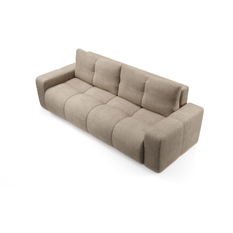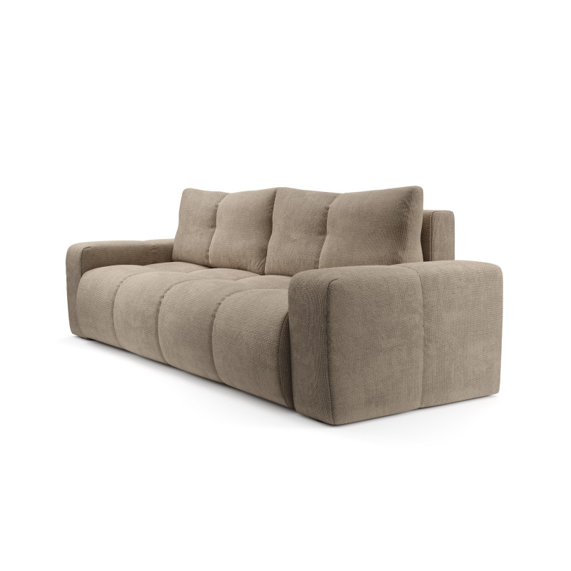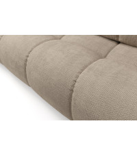SOHO sofa FLOW 01 to mebel o wymiarach 259 x 90 x 99 cm, który zapewnia wygodne i przestronne miejsce do siedzenia. Tapicerowana jest wysokiej jakości tkaniną Flow w subtelnym beżowym odcieniu, który wnosi do wnętrza przytulność i elegancję. Sofa wyposażona jest w funkcję spania typu DL, co pozwala na szybkie i łatwe przekształcenie jej w komfortowe łóżko o powierzchni 149 x 200 cm. Dodatkowo mebel posiada praktyczny pojemnik na pościel, który umożliwia wygodne przechowywanie. Luźne poduchy oparciowe dodają całości lekkości i zwiększają komfort użytkowania, idealnie dopasowując się do pleców. Sofa ma tapicerowane plecy, dzięki czemu można ją ustawić dowolnie w pokoju, nawet na środku przestrzeni. Całość wspierają czarne, plastikowe nóżki o wysokości 2 cm, a mebel wymaga samodzielnego montażu, co ułatwia transport i ustawienie.