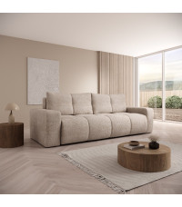 SOHO sofa FLOW 02 to połączenie nowoczesnego designu i wyjątkowego komfortu. Jej miękka tkanina w ciepłym, beżowo-piaskowym odcieniu wprowadza przytulność do każdego wnętrza. Idealna do salonu, w którym liczy się zarówno styl, jak i funkcjonalność.
