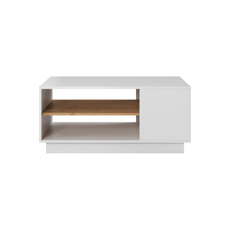 Stolik kawowy 3D to doskonały wybór dla osób szukających eleganckiego i funkcjonalnego mebla do salonu. Wykonany z wysokiej jakości płyty w kolorze białym i dębie craft złotym, wpisuje się w nowoczesne aranżacje wnętrz. Dzięki swojej prostocie i stylowym akcentom, stolik z łatwością wkomponuje się w każde pomieszczenie, oferując wygodne miejsce do przechowywania.