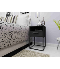 Wybierz antracytową szafkę nocną CADRO. Kompaktowy rozmiar 40 cm sprawdzi się w niedużym pomieszczeniu, a wysoka, metalowa podstawa dba o lekki i stylowy charakter.