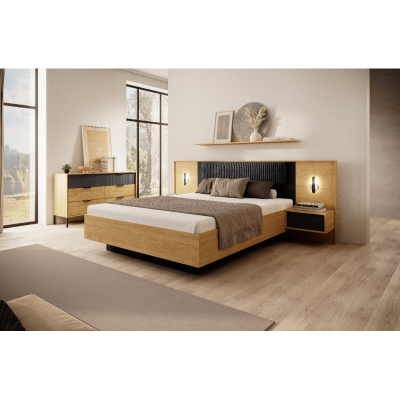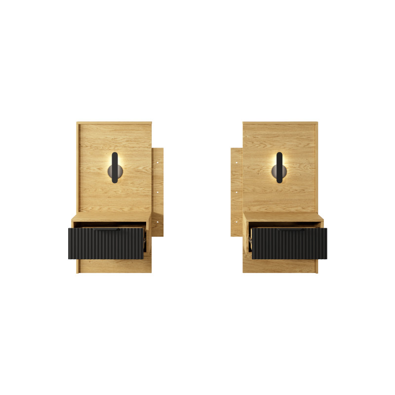 Stoliki nocne Baltic to stylowy dodatek do każdej sypialni, który łączy funkcjonalność z nowoczesnym designem. Z oświetleniem LED w zestawie, nadają ciepły, klimatyczny nastrój, a metalowe uchwyty i nogi w kolorze czarnym podkreślają ich elegancję. Dzięki przestronnym szufladom, stoliki zapewnią wygodny dostęp do wszystkich drobiazgów, które chcesz mieć pod ręką.