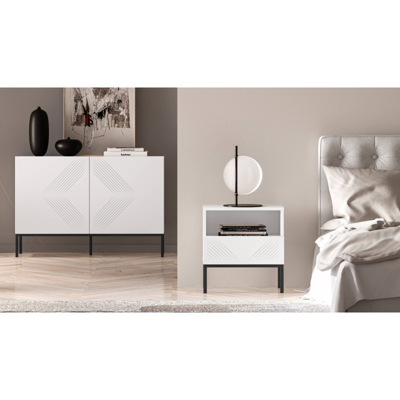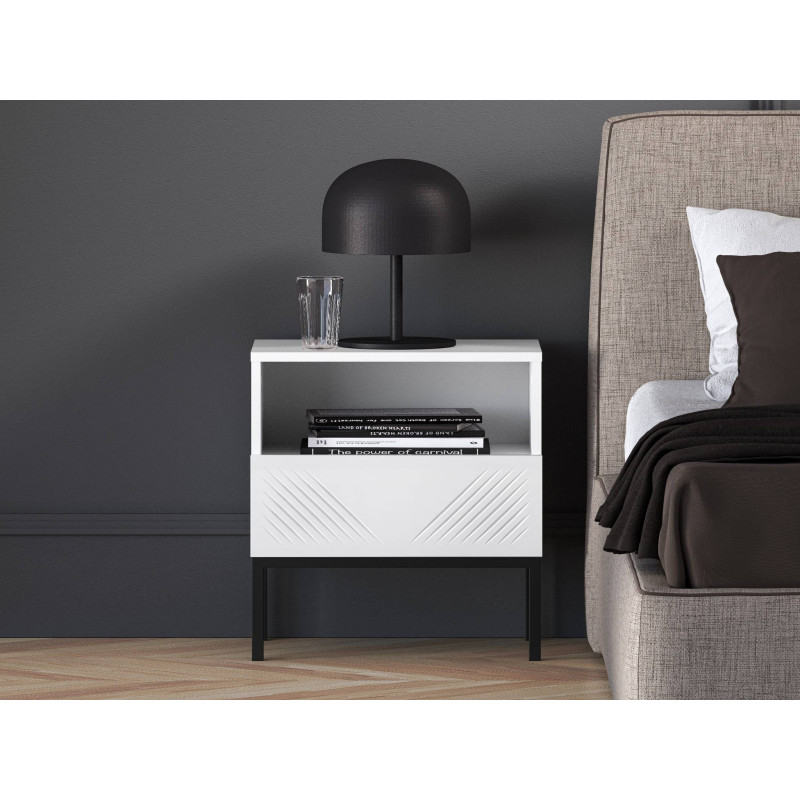 Szafka nocna Clearing to idealne połączenie eleganckiego designu i funkcjonalności, stworzone z myślą o osobach ceniących estetykę i praktyczność. Wyróżnia się solidnym wykonaniem oraz przemyślaną konstrukcją, która pozwala na efektywne zagospodarowanie przestrzeni. Wyposażona w otwartą półkę i pojemną szufladę, oferuje wygodne miejsce do przechowywania książek, akcesoriów oraz innych drobiazgów. Dzięki temu pomaga utrzymać porządek, zapewniając jednocześnie łatwy dostęp do najpotrzebniejszych rzeczy. To nie tylko funkcjonalny mebel, ale także stylowy element wystroju wnętrza. Nowoczesny design i trwała konstrukcja sprawiają, że szafka nocna Clearing doskonale wpisuje się w aranżację sypialni, dodając jej elegancji i wyjątkowego charakteru.