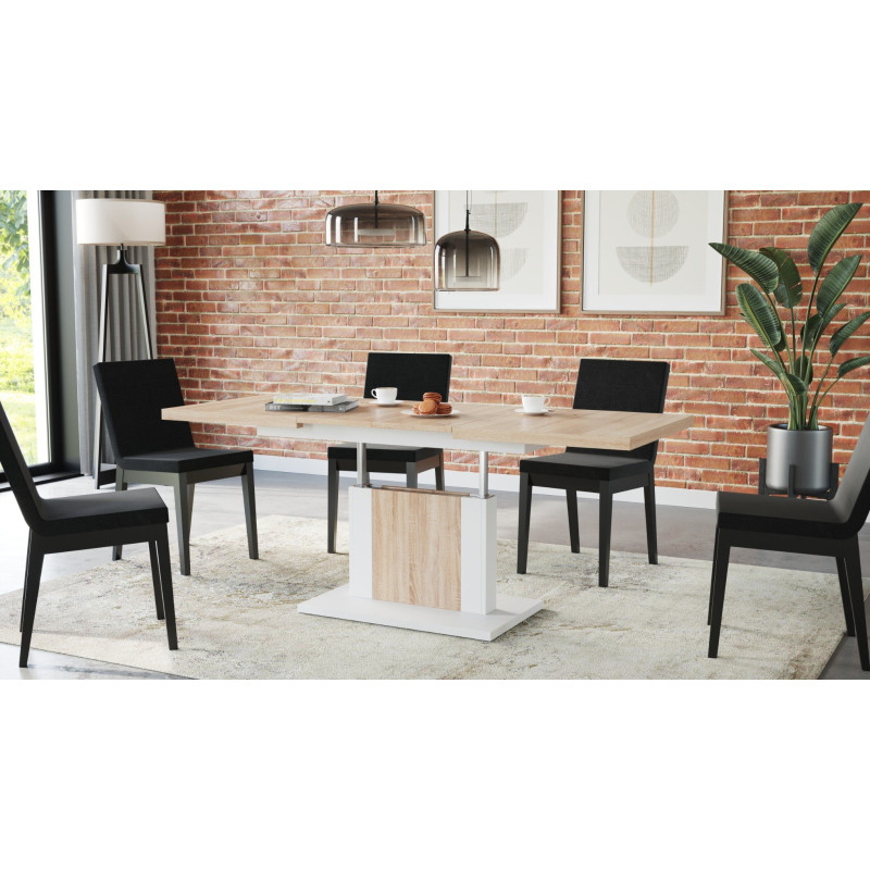 Starszy bliźniak modelu NOIR posiadający funkcję podnoszenia blatu z regulacją wysokości. Jest doskonałym meblem dla osób gustujących w nowoczesnych rozwiązaniach. Dzięki dwóm 30 cm wkładkom jego blat można powiększyć do 150 lub 180 cm! Idealnie sprawdzi się więc w przypadku wszelkiego rodzaju imprez rodzinnych, czy tez spotkań ze znajomymi.