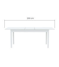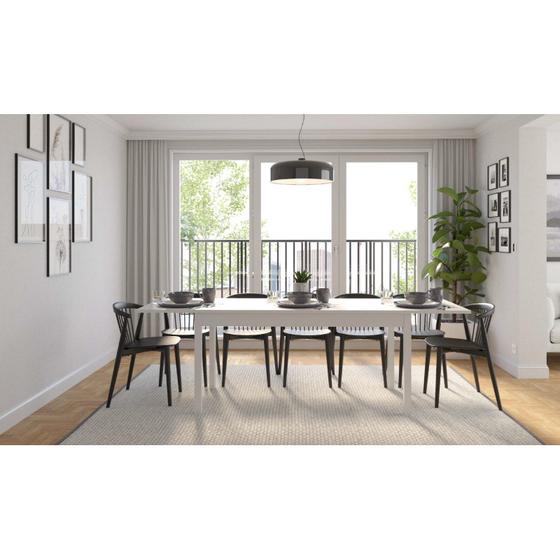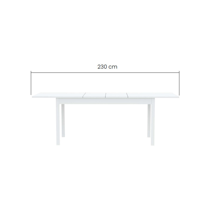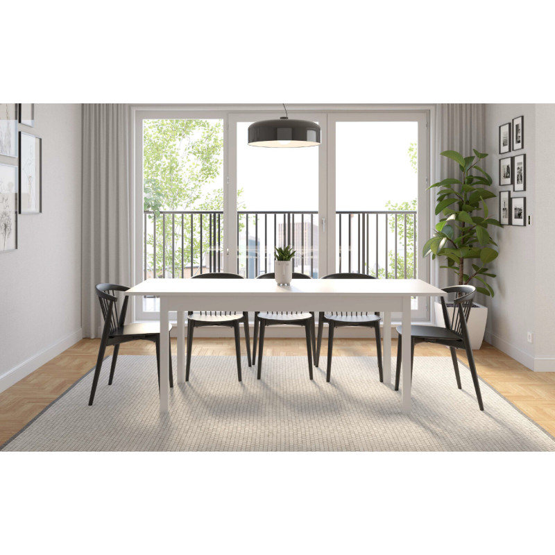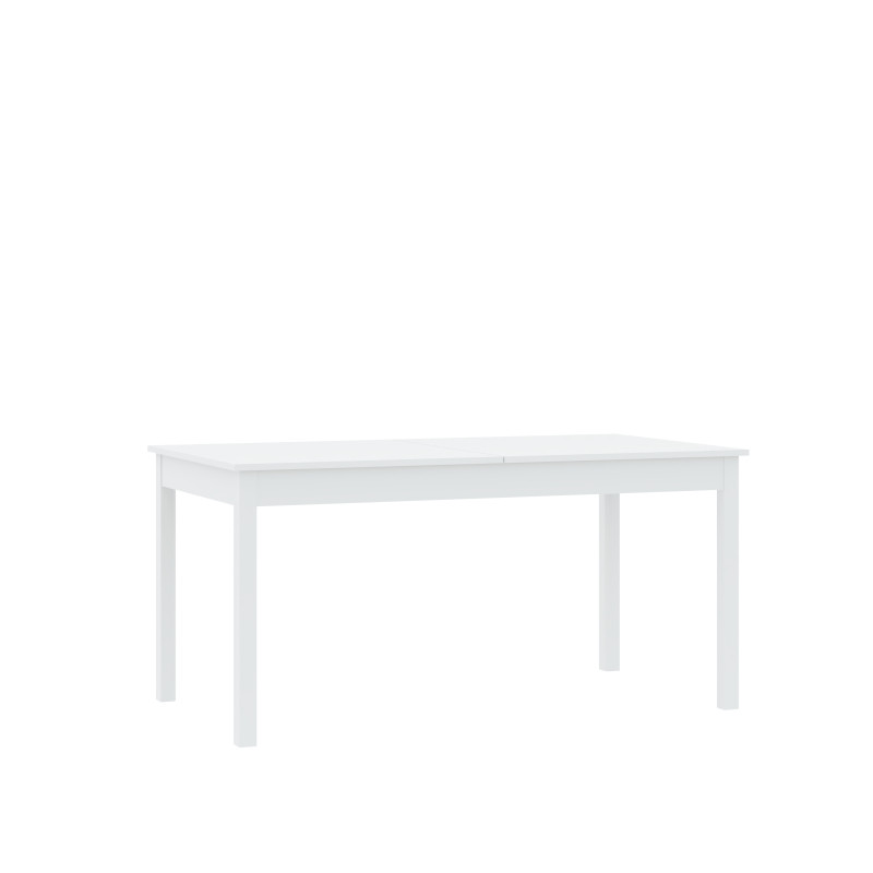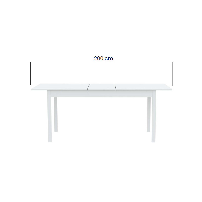 Elegancki i funkcjonalny rozkładany stół w uniwersalnej bieli, który doskonale łączy nowoczesny design z praktycznością. Wykonany z wytrzymałej płyty laminowanej o grubości 18 mm, z blatem i wkładką zabezpieczonymi trwałym obrzeżem ABS, co gwarantuje odporność na codzienne użytkowanie. Pozostałe krawędzie wykończono obrzeżem papierowym w kolorze mebla. Solidne nogi z MDF zapewniają stabilność, a specjalne ślizgacze chronią podłogę i ułatwiają przesuwanie.