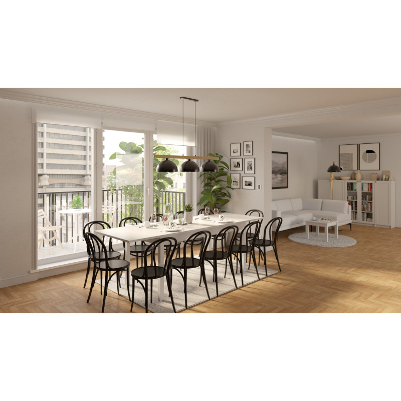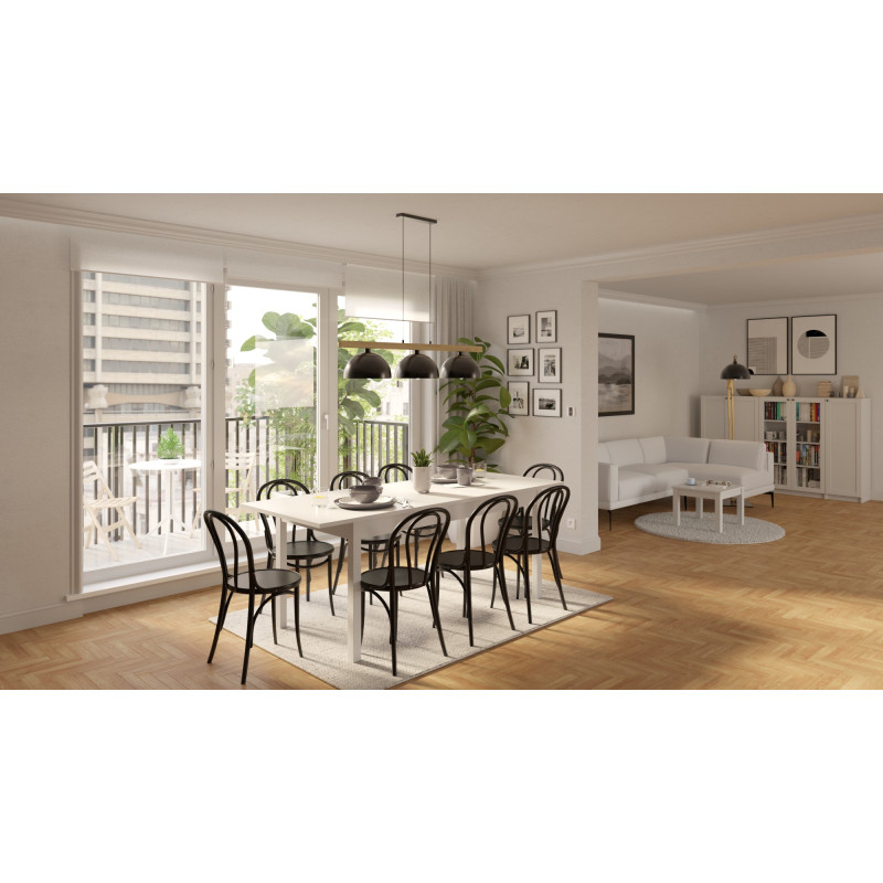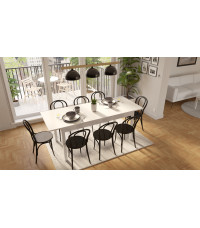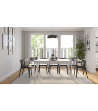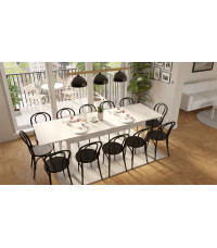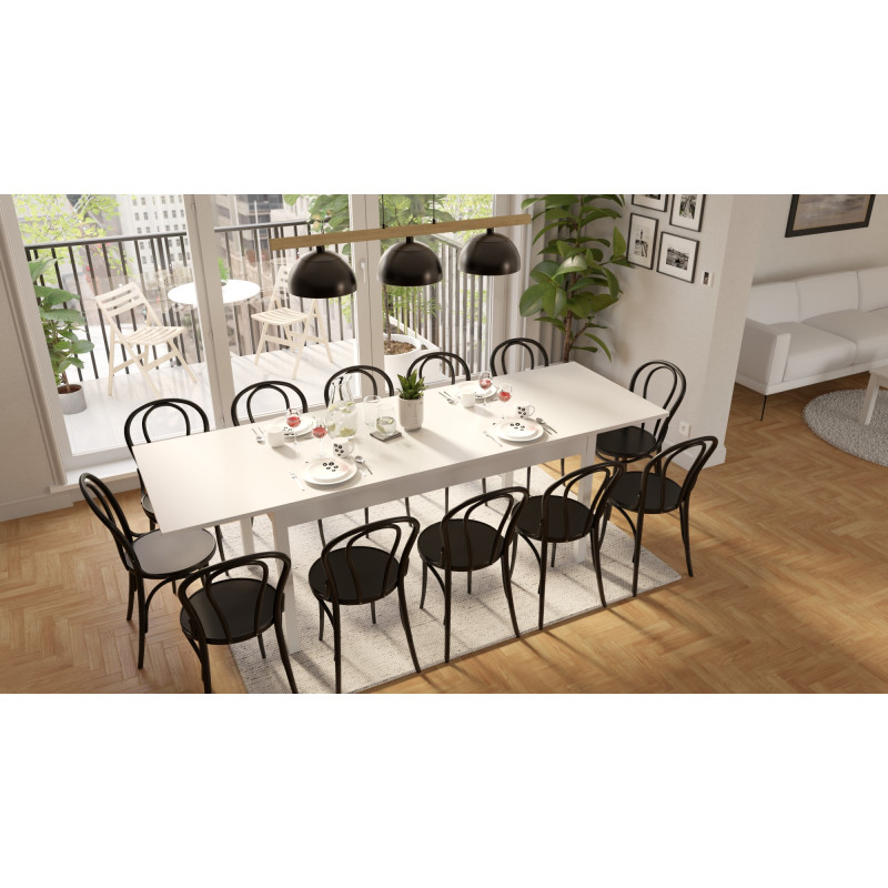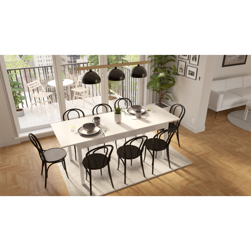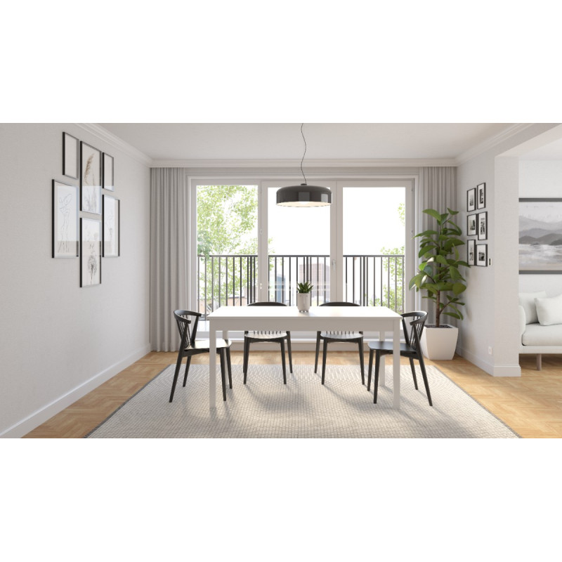 Elegancki i funkcjonalny rozkładany stół w uniwersalnej bieli, który doskonale łączy nowoczesny design z praktycznością. Wykonany z wytrzymałej płyty laminowanej o grubości 18 mm, z blatem i wkładką zabezpieczonymi trwałym obrzeżem ABS, co gwarantuje odporność na codzienne użytkowanie. Pozostałe krawędzie wykończono obrzeżem papierowym w kolorze mebla. Solidne nogi z MDF zapewniają stabilność, a specjalne ślizgacze chronią podłogę i ułatwiają przesuwanie.