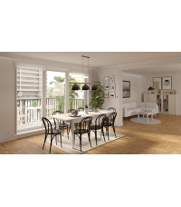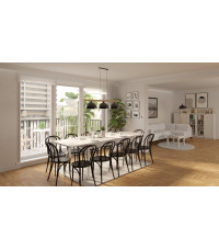Stół SENDI 160 to przestronny, funkcjonalny model stworzony z myślą o większych rodzinach i wspólnych posiłkach. Jego biała powierzchnia wprowadza do wnętrza świeżość i elegancję, a prosty design ułatwia dopasowanie do różnych stylów. To solidny wybór do jadalni lub salonu z otwartą kuchnią.