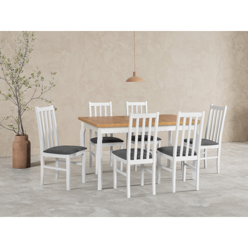 Jego wymiary (140-180 cm długości, 80 cm szerokości i 78 cm wysokości) sprawiają, że idealnie nadaje się do zarówno małych, jak i większych przestrzeni, zapewniając wygodę podczas posiłków oraz spotkań z bliskimi. Stół dostarczany jest w jednym pakiecie i wymaga samodzielnego montażu, co czyni go łatwym w transporcie i dostosowaniu do indywidualnych potrzeb. Produkt objęty jest dwuletnią gwarancją, co potwierdza jego jakość oraz solidność. Wybierz stół Alba 5, aby podkreślić elegancję swojego wnętrza.