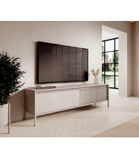 Stolik RTV 187 2D to mebel, który doda przestronności i nowoczesnego charakteru każdemu wnętrzu. Dzięki szerokiej powierzchni oraz minimalistycznemu designowi, doskonale komponuje się w salonie, pełniąc funkcję eleganckiego i funkcjonalnego miejsca na sprzęt RTV. System push-to-open w szafkach oraz metalowe nogi w beżowym odcieniu nadają mu subtelności, a pełen wysuw szuflad zapewnia wygodny dostęp do przechowywanych przedmiotów.